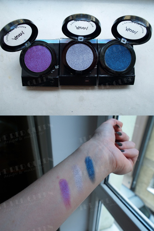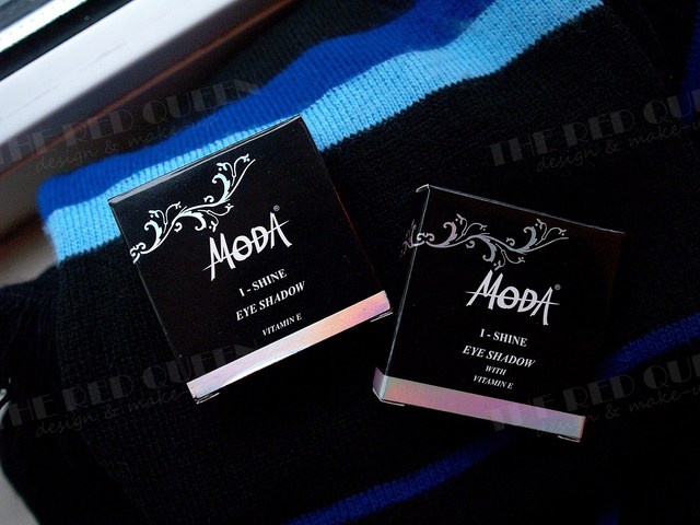 I am one of those people who claim that you can't have "too many eye shadows". Although 99% of my clothes is black, when it comes to eye shadow and nail polish I like to play with different shades. This time I decided to write about very affordable, yet very good eye shadows from the brand Moda. It is a Trkish cosmetics brand, which I have very reacently read about. The other bloggers praised them, so I decided to try them out. I got myself seven shades - 303, 305, 306, 317, 329, 333, 336. Eye shadows come in carboard box with silver details, inside which is a very firm plastic packaging containing the product.